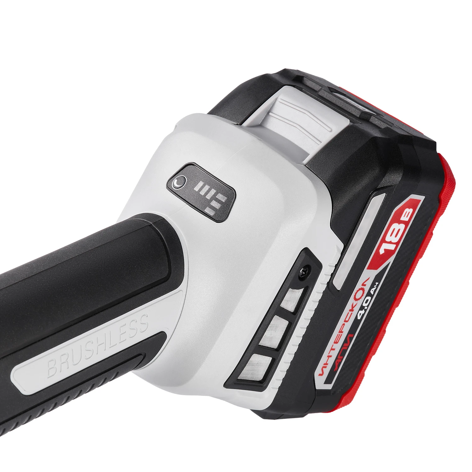 Модель совместима со всеми аккумуляторными батареями ИНТЕРСКОЛ универсальных платформ АПИ 18 В и инновационными бивольтовыми АПИ 18/36 В, а также АПИ МАКС 18 В и АПИ МАКС 18/36 В. Использование бесщёточного (вентильного) электродвигателя позволило получить энергетические характеристики машины, значительно превосходящие аналогичные показатели аккумуляторного и даже сетевого инструмента с классическим коллекторным приводом, что достигается за счет более высокого коэффициента полезного действия (КПД выше на 30%). Благодаря этому можно выполнить больше работы на одном заряде аккумуляторной батареи и таким образом более экономно расходовать ее ресурс.
