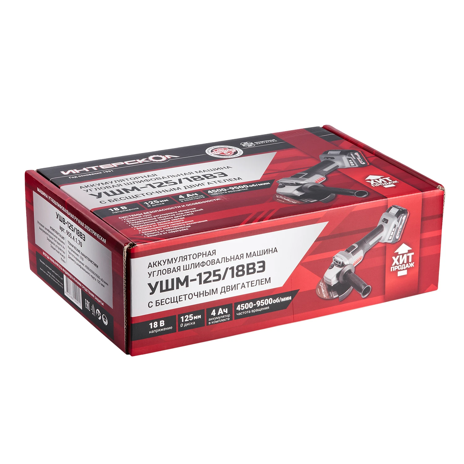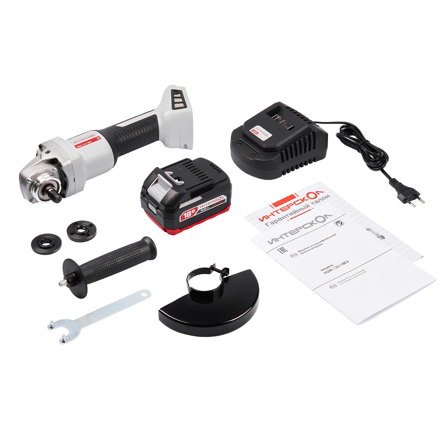 Аккумуляторная угловая шлифовальная машина ИНТЕРСКОЛ УШМ-125/18ВЭ c бесщёточным (вентильным) электродвигателем рекомендуется для профессионального использования на производстве, объектах строительства и ремонта, в автосервисах, мастерских различного профиля и т.п.
