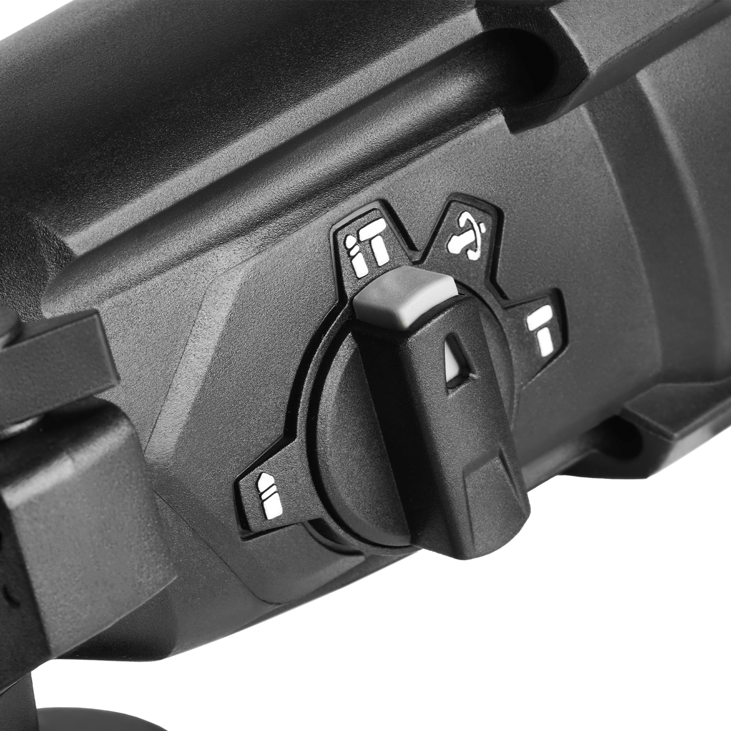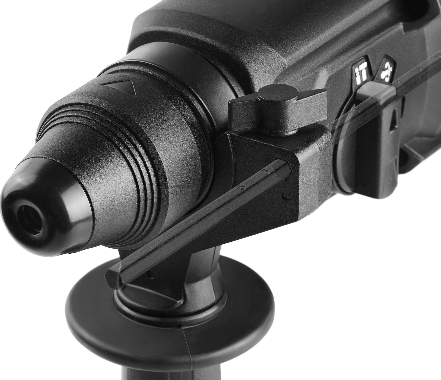 Трехрежимный сетевой перфоратор класса SDS plus. Рекомендуется для бурения отверстий и небольших отбойных работ для бытового и профессионального использования. Оснащается дополнительной рукояткой с ограничителем глубины бурения.