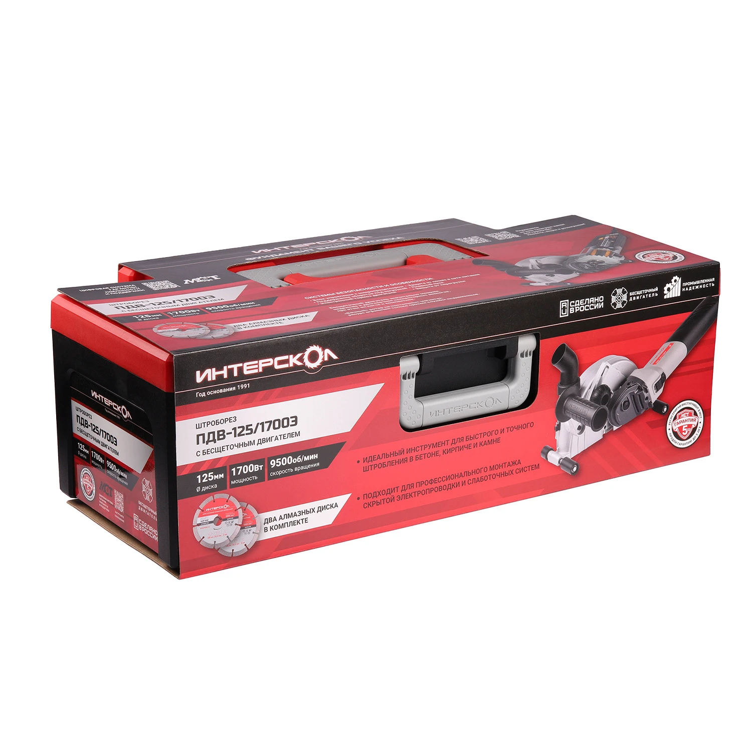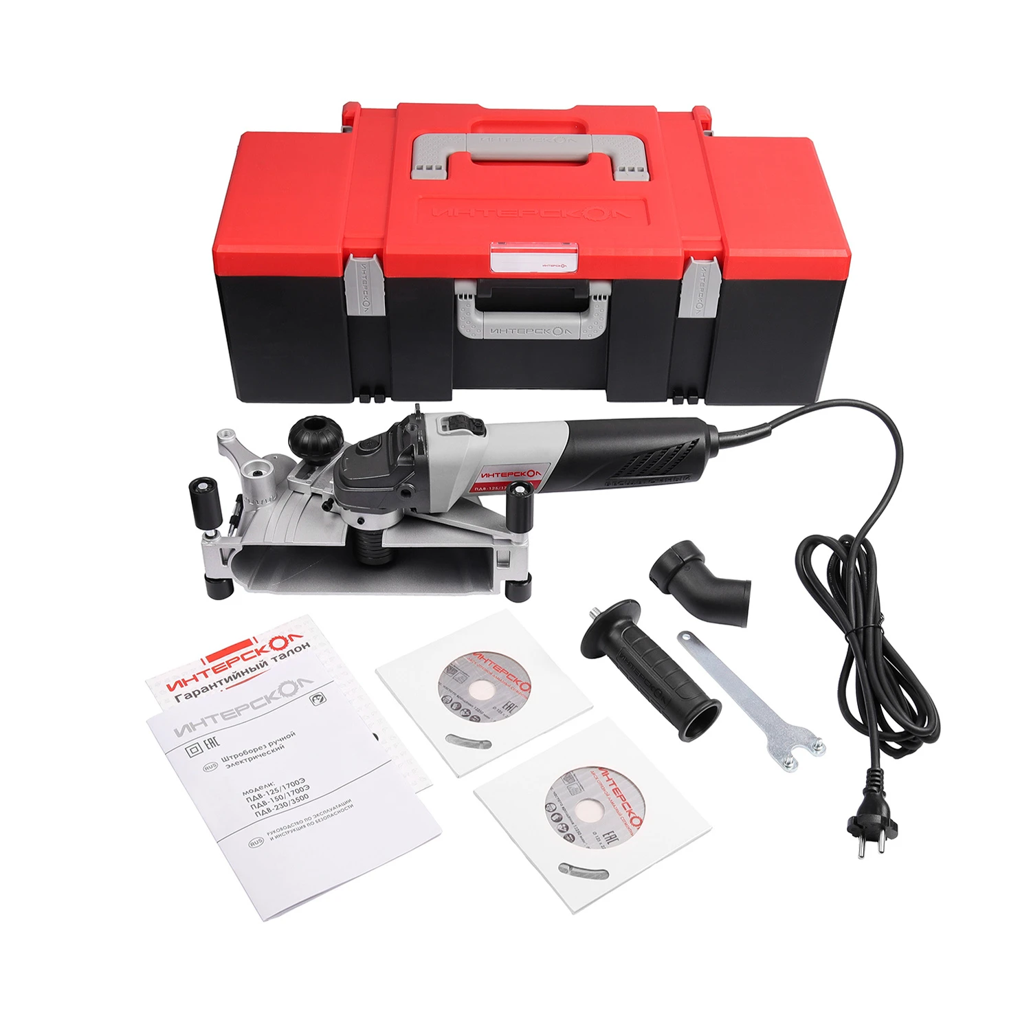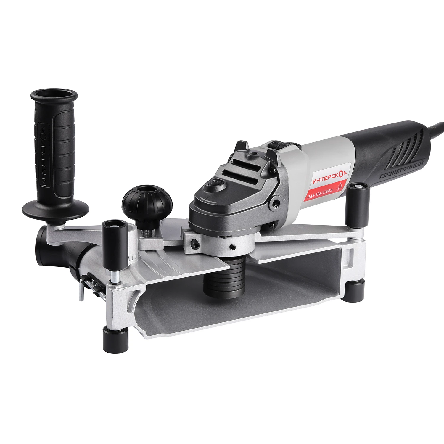 ИНТЕРСКОЛ представляет профессиональный штроборез, выполненный на базе углошлифовальной машины с модифицированным редуктором. Конструкция позволяет легко и быстро выполнять штробы, ролики на кожухе позволяют вести машину по поверхности ровно и уверенно. Ширина штробы регулируется дистанционными шайбами, а глубина – узлом регулировки вылета дисков.