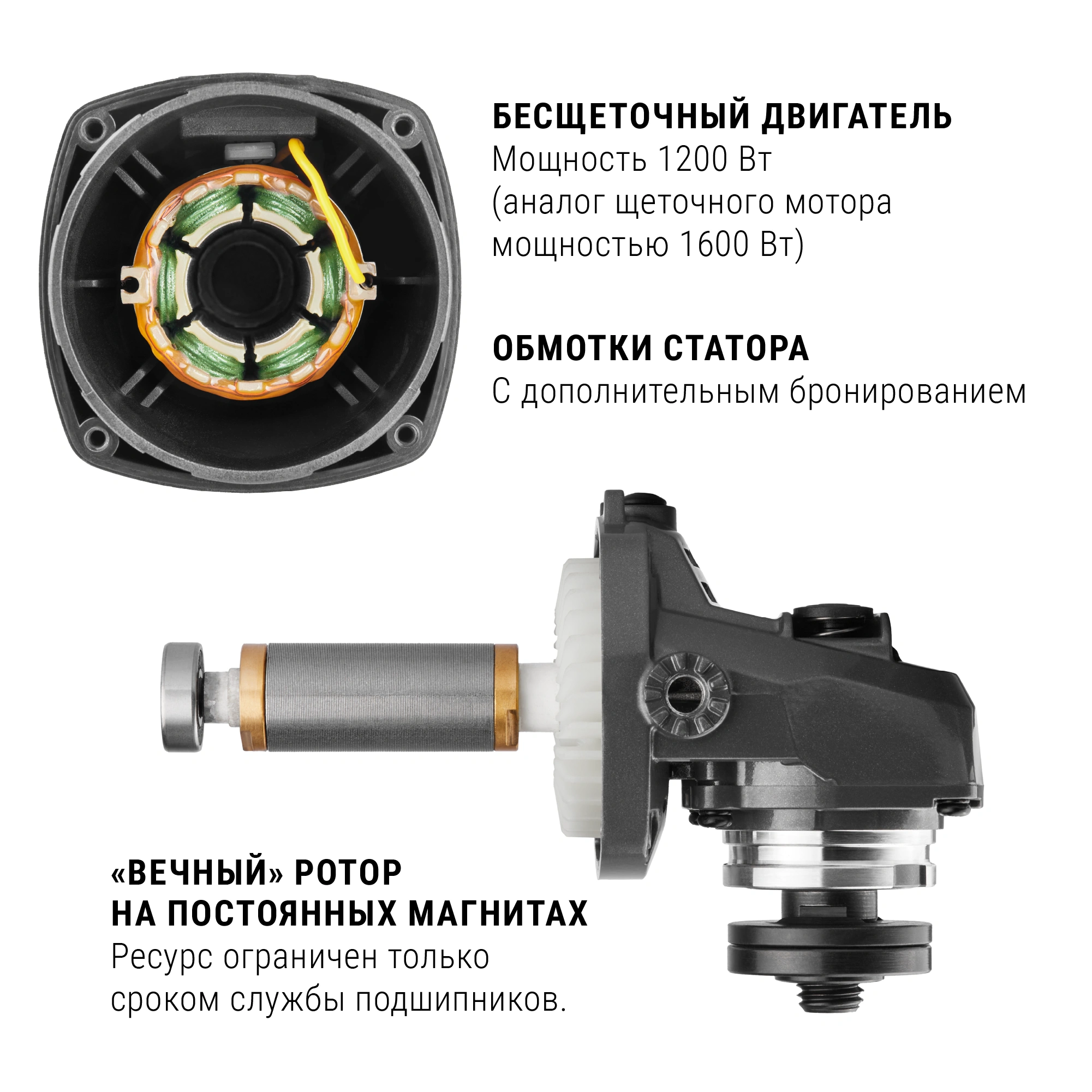 Оснащение современной УШМ бесщеточным двигателем кардинально меняет ее потребительские качества, делая инструмент более выносливым, надежным и экономичным. Такая УШМ имеет намного более высокие качества в работе и повышенный в разы срок службы.