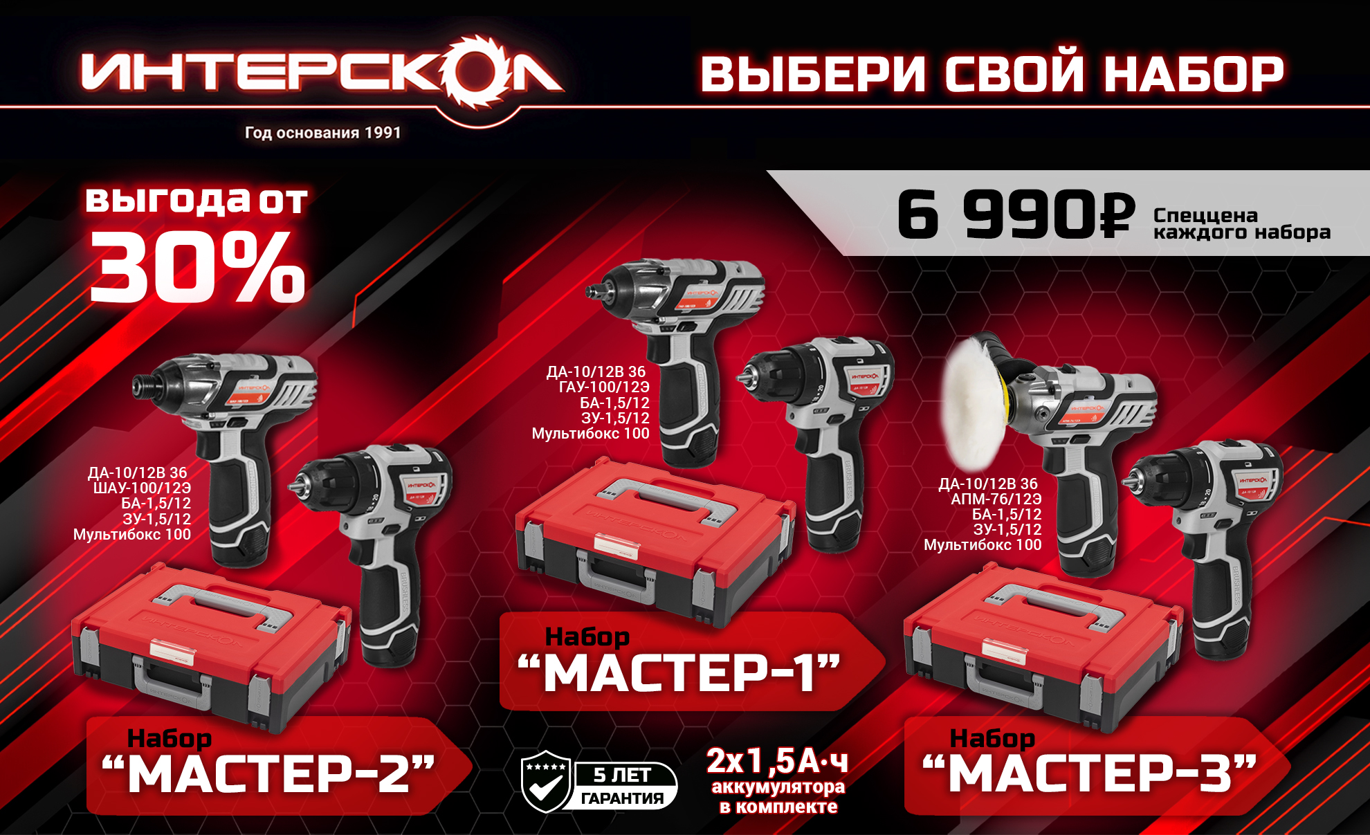«Интерскол» представляет новые наборы инструмента «Мастер» в системе хранения МультиБОКС по специальной цене. Одно из лучших предложений декабря! Стоимость любого набора – 6990 рублей.